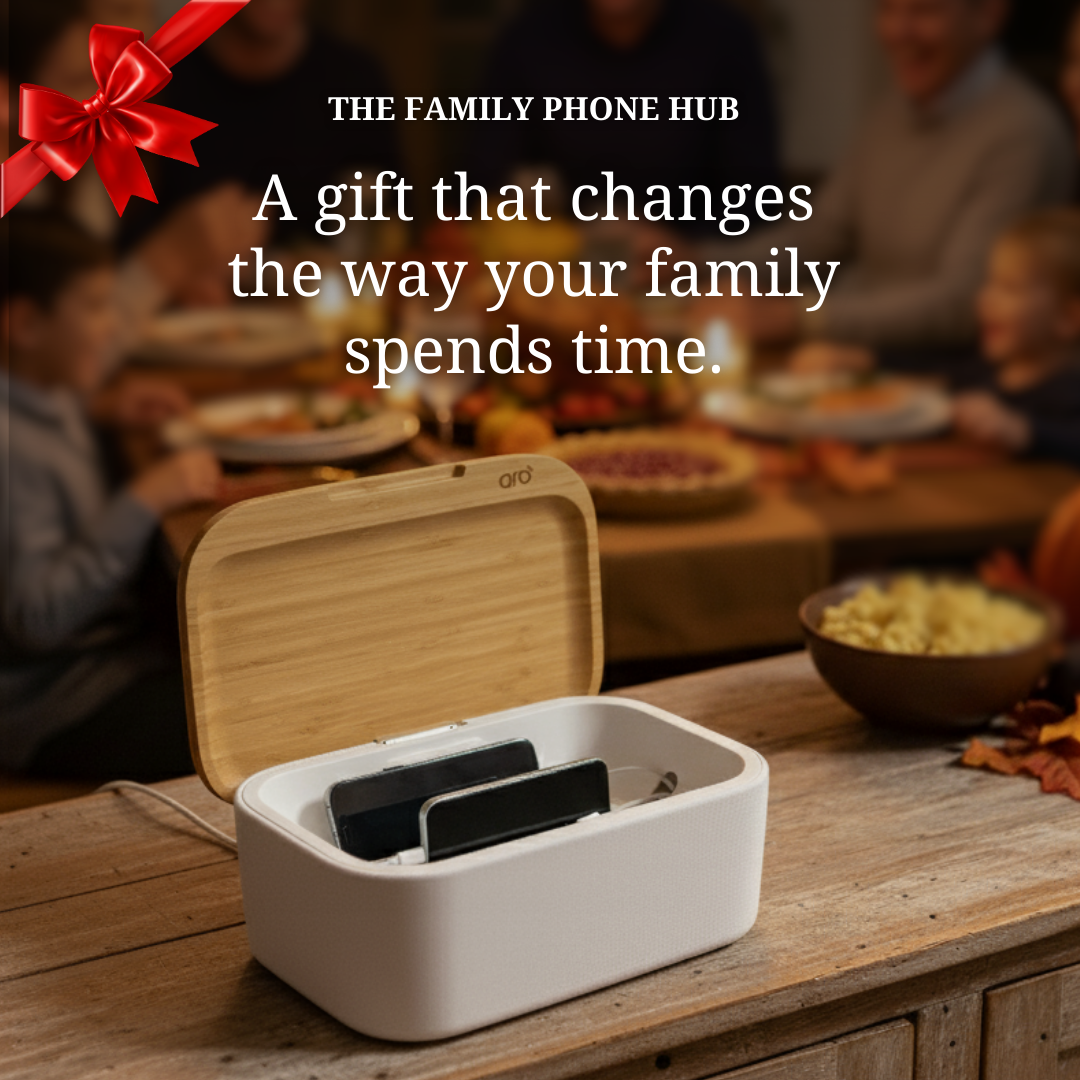 The Aro box creates an environment of presence and connection in your home. Aro’s unique approach to reducing screen time is centered on helping you develop the habit of putting down your phone.